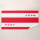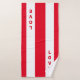 Élégant texte vertical sur un ensemble de serviettes rayées rouge et blanc. Le texte peut être personnalisé.