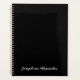 Simple girly mignon noir et blanc manuscrit décontracté nom de script, texte, monogramme ou l'année personnalisée Planner. Texte blanc personnalisé sur l'arrière - plan de couleur unie noire.
