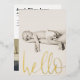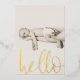 Il s'agit d'un modèle bébé moderne et minimaliste. A l'avant, vous trouverez de l'espace pour votre photo portraitiste préférée avec une typographie éditable "bonjour" d'une simplicité étonnante dans la vraie calligraphie de feuille d'or. Au verso, il y a de l'espace pour une photo horizontale, le nom du nouveau-né et les statistiques ainsi qu'un message personnel. Customisez facilement pour ce souvenir unique pour la famille et les amis à apprécier pour les années à venir.