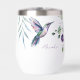 Cet élégant tondeuse à vin thermique présente une représentation époustouflante d’un colibri en plein vol, ses ailes présentant un mélange fascinant de vert émeraude et d’améthyste pourpre, capturant les mouvements gracieux et rapides de l’oiseau. Le colibri plein de vie est entouré de botaniques délicats, dont des orchidées aux pétales mauves et blancs et aux centres jaunes. Le feuillage verdoyant, minutieusement détaillé, met en valeur les éléments floraux, créant un design harmonieux et magnifique. Ce beau tumbler est un choix idéal pour les amoureux de la nature qui trouvent la paix dans la beauté du monde naturel. C’est une source d’inspiration pour les amateurs d’art qui aiment l’aquarelle et qui font un cadeau parfait pour toute occasion. Le texte personnalisable vous permet d'ajouter un nom ou un autre texte, ce qui en fait une pièce personnalisée pour vous-même ou un cadeau réfléchi pour quelqu'un de spécial. Que vous l’utilisiez pour garder votre vin à la température parfaite pendant un pique-nique, pour profiter d’une soirée confortable à la maison ou comme accessoire élégant pour des rassemblements en plein air, ce charmant tumbler est une célébration de la splendeur de la nature, conçu pour inspirer et ravir.