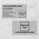 Carte de visite que vous pouvez customiser pour vos clients ou clients de trouver facilement votre adresse professionnelle et les coordonnées de votre contact. Les couleurs et le style de design sont des textes noirs sur des textes gris arrière - plans et alignés à gauche. Pour customiser ce carte de visite, téléchargez votre logo d'entreprise, tapez votre nom d'entreprise, votre nom, votre titre, votre adresse, votre numéro de téléphone, votre courriel et votre site Web ou votre page de médias sociaux professionnels. Après avoir téléchargé le logo et tapé des textes, veuillez vérifier l'apparence sur les côtés avant et arrière. Si l'apparence vous plaît, vous pouvez passer votre commande maintenant. Si vous avez besoin de redimensionner et déplacer le logo et les textes pour s'adapter à ce carte de visite, s'il vous plaît changer dans l'outil de conception. Vous pouvez également effectuer d'autres modifications dans l'outil de conception en fonction de l'apparence de ce carte de visite que vous préférez, comme changer la couleur arrière - plan, la couleur de police et le style de police.