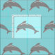 Le bleu de turquoise et le dauphin de gris modèlent le textile du tissu do-it-yourself. Copie mignonne de conception d'animal de mer pour des accessoires de baby shower et d'enfants. Arrière - plan fait sur commande de couleur derrière l'illustration grise de poissons. Faites les vêtements et les décorations de vos propres enfants. Icône neutre de genre pour des garçons et des filles.