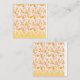 Textile pattern featuring a vibrant orange and gol card
