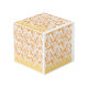 Textile pattern featuring a vibrant orange and gol cube