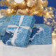 Textured denim background. Torn hole in the fabric Wrapping Paper
