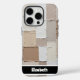 This premium mobile device protector showcases a sophisticated, heavily textured impasto oil painting. Raised geometric squares and rectangular blocks in elegant neutral tones of white, cream, beige, and grey create a refined 3D tactile surface. The distinct, thick brushstrokes highlight its modern abstract art style. Personalize this unique smartphone accessory with a name like "Elizabeth"; you can easily remove the name and any other elements you don't like from within the design tool, crafting your perfect bespoke mobile phone protector.