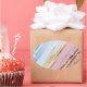 Pink and blue textured background, painted with large brush strokes, decorated with gold foil. Grunge Texture.