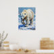 This image is a textured painting of a polar bear walking through a snow-covered landscape. The artwork features thick, visible brushstrokes in an impasto style, which gives the polar bear's fur and the surrounding snow a three-dimensional feel. The colour palette is predominantly white and various shades of blue, with subtle hints of yellow and orange in the bear's fur.