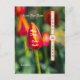A spring or summer themed Save The Date post card featuring some beautiful red and orange tulips in a flower garden. This was a photo I took in Springfield Missouri, United States and turned into a digital art painting which is also known as Mixed Media.