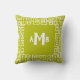 Thai Lime Reverse Greek Key Border Monogram Throw Pillow