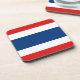 A design based on the flag of Thailand covers the front of this square coaster. Most flags have a 3:2 or 2:1 aspect ratio but here have been intelligently reshaped by FlagAndMap to fit the product while preserving the integrity of the original design. These coasters are an ideal way to add a little Thai flair to your home.