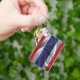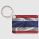 Keychain with the flag of Thailand in wavy fabric style design. This design features the Thai flag colours and design with a beautiful waving material textured effect. This flag design is a great way to show you are proud to be from Thailand.