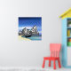 A landscape illustration of a tropical beach scene in Thailand. This tropical paradise is Railay Beach, which is situated between Krabi and AO Nang. The Limestone Cliffs are drawn with black and white geometric lines. They Tower above the car motion. They Tower above the calm ocean comma a long tail boat floats in the water. If you would like any help customizing this design, please use the ask this designer button, just below this text.