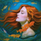 “Thalassa” - Women In Water. In this colourful fine art women in water image, a stunning woman with red hair merges with the ocean's currents. Fish dart through her hair, symbolizing her connection to the sea. Her presence exudes strength and inspiration, a testament to a beautiful resilient strong woman water portrayal.