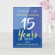 An acknowledgment of an employee's long service to your company or organization. This is designed in tasteful blues, pale yellow, and white. A loyal worker will appreciate the fact that you have remembered the number of years that they have contributed to helping your business or organization thrive and succeed. The card allows you to add a salutation, the name of the recipient, number of years he or she has served, your company or organization name, and also a personal message inside. You can also add your company or organization info on the back. A gesture that is sure to be appreciated. A long service card.