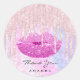Thank Name Sweet16th Bridal Pink Holographic Lips Classic Round Sticker