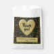 The cool numeric design has a black and gold random number pattern with the gold number 20 repeated in varied sizes and angles. There is a gold puffy heart shape in the centre, front with "Thank you.” The lower front has room for, "Thank you for coming to my birthday party. A fun idea for party favours for your 20th birthday party, and for all occasions or celebrations where you are featuring the number twenty; just change the text to match the event.