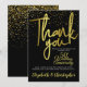 A gorgeous thank you card. This fabulous card features gold effect typography on a black background with gold confetti. Easy to personalize with your own thank you details. The perfect way to say thanks after a 50th wedding anniversary party, or to say thank you for another type of event.