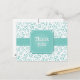 This design is a teal and white random number pattern with the teal milestone number 55 repeated in varied sizes and angles over a white background. There is a ticket shape in the center for your text.