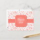 This design is a coral and white random number pattern with the coral milestone number 75 repeated in varied sizes and angles over a white background. There is a ticket shape in the center for your text.