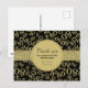 Thank You: 80th Black/Gold Birthday Number Pattern Postcard
