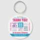 The perfect way to show your appreciation and thanks.. This stylish keychain shows several variations of a thank you message in pink, purple and blue typography. It would make a great way to thank a nurse, doctor or friend.