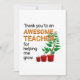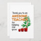 Fun, stylish THANK YOU AWESOME TEACHER Card. The modern design shows bold orange typography, with three different sized plants intertwined in the lettering. The wording reads 'Thank you to an awesome plant teacher for helping me grow'. This stylish Awesome Teacher Thank You Card would be to send to your favourite teacher(s) to show your appreciation to them. This Teacher Thank You card for Awesome Teachers would also be great for End of Term, Teacher's Appreciation, birthdays, Christmas, etc.. Matching gifts are available, so you can create awesome gift sets for the best teacher ever.