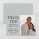 A very modern, fun and casual thank you flat card on invitation card stock in natural earthy colours to coordinate with your beach wedding photo. Perfect for thanking your friends, family and other guests to who attended a special destination wedding. Beautiful shades of very light grey blue and brown, with easy to read, modern and stylish text. Sample photo is commercial use friendly creative commons from stockvault. Upload your own couple photo and click the handy customize button to resize or reposition as necessary.