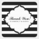 Black and white tones abstract stripes geometric pattern. Custom template for thank you wedding sticker.