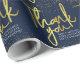 A gorgeous thank you wrapping paper. This fabulous gift wrap features gold effect typography on a blue background with gold confetti. Easy to personalize with your own thank you message if required.