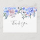 WATERCOLOR POSTCARD WITH ROSES AND FLOWERS IN SHADES OF BLUE.