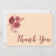 A lovely thank you greeting card, this item features a lovely flower graphic in the upper left hand corner on a peach background. At the bottom to the right is "Thank You" written beautifully in burgundy cursive text. Personalize yours today!