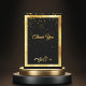A black background colour and a faux gold frame. With a golden confetti rain. On front a modern hand lettered style script and the text: Thank You and a floral faux gold decor.