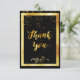 A black background colour and a faux gold frame. With a golden confetti rain. On front a hand lettered style script and the text: Thank You! and a floral faux gold decor.