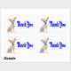Stickers feature an adorable Chihuahua blonde pup sitting on a crisp white background with the Thank You Greeting in a bold contrasting Blue Script