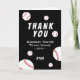 Thank you Coach Black Baseball Card. Simple baseball thank you coach card with thank you text, coach name, team name, year, your name and baseball balls. Personalize the card with names and your text inside the cards. Great thank you card for the baseball team coach!