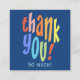 A colourful thank you square business card. This modern typographic card is the perfect way to say thanks in style. Personalize with a custom name and message. These little promotional cards would be perfect to add to a sales package - or include with correspondence.