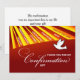 On your daughter’s Confirmation, it is a special event. This invitation has a red background with rays featuring the seven gifts of the Holy Spirit. Customize with her name on the front and add the details inside.