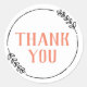 Whimsical thank you sticker featuring hand lettered script and doodle accent wreath.