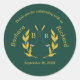 Thank You Classic Elegant Custom Golf Theme Wedding Round Sticker with watercolor golf course in the background. Names and monograms of the bride and groom along with the date of the wedding. If you need any design assistance, just send a message or an email to charmdesignstudio@rcn.com and we'll be delighted to assist.