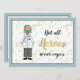 Thank a doctor with this cutely designed card of a female physician in whites and wearing a face mask on a pale starry background. Over laid with text that reads "Not all heroes wear capes." Editable text on back or delete for a heartfelt handwritten note of you own. Created in part with graphics by Alice Smith from digiwebstudio.com