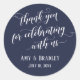 Thank You for Celebrating With Us White on Navy Classic Round Sticker