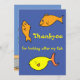 With cute cartoon fish on the front and back this card is a fun way to say thank you for looking after your fish. Copyright Mindgoop