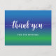 Thank you for the referral for business or customer service. A simple but elegant thank you in script on a beautiful blue green blend background. The text line "for the referral" can be edited if you like. A great way to thank a customer who has referred new clients to you, for real estate, salon, or any kind of service business.