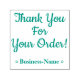 This appreciative rubber stamp design features the message "Thank You For Your Order!" and a customized business name. It might be used by a professional, a company, a business, or an organization to show thanks to clients or customers for their business.