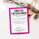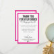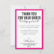 THANK YOU FOR YOUR ORDER glam insert modern pink Card