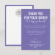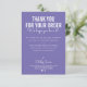 THANK YOU FOR YOUR ORDER insert white ink purple Card