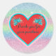 Thank you for your purchase sticker in a red heart with a turquoise outline and turquoise roses against a pastel faux glitter background