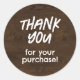 "Thank you for your purchase" stickers for your outgoing orders. Faux brown wood/woodgrain pattern.