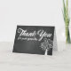 Thank you card in black and white featuring a tree filled with hearts against a chalkboard background.